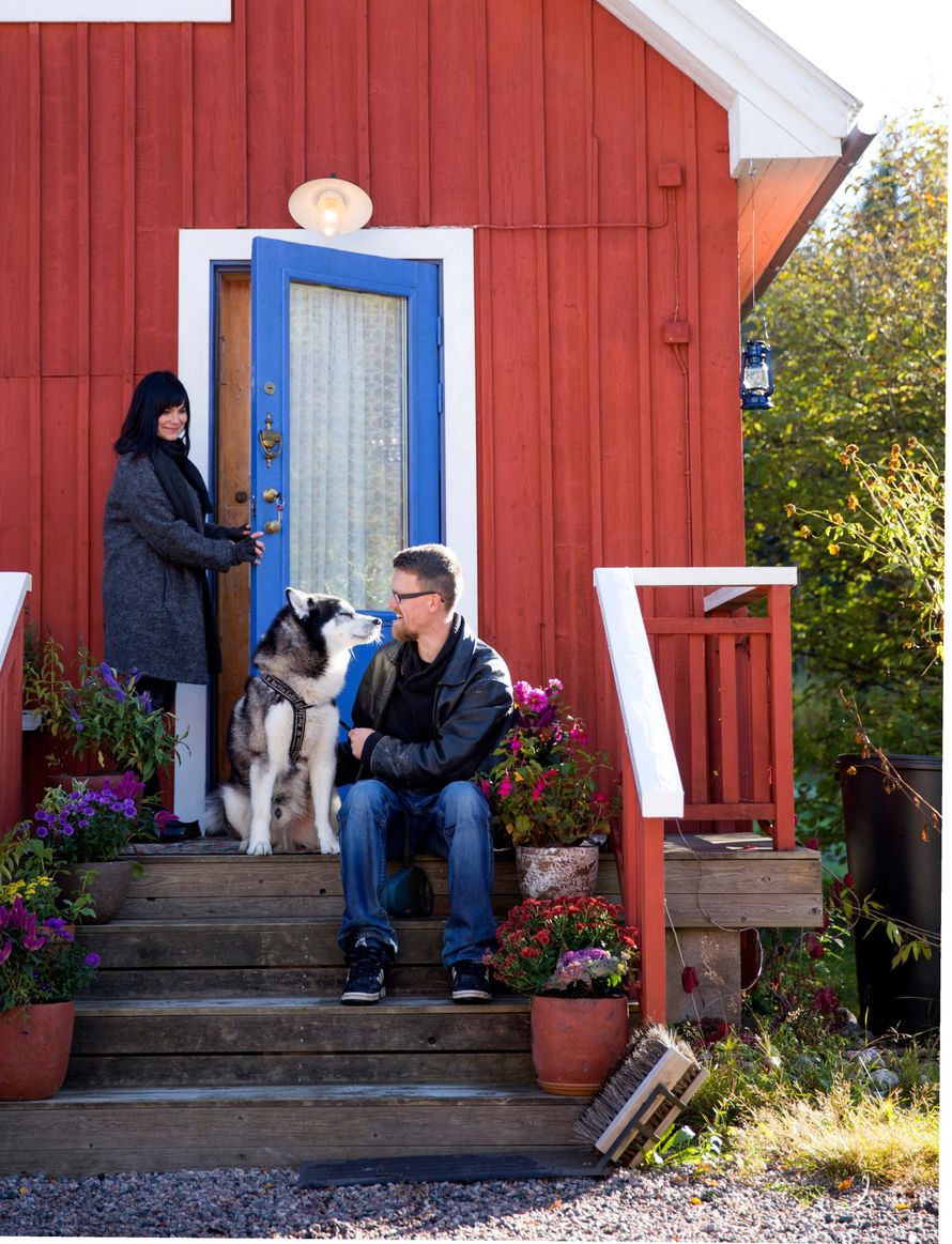 Taiteilijat Meri Peura ja Ilmari Gryta löysivät kodikseen unelmiensa punaisen tuvan ja työtilakseen pienen navetan. Huonekalut he nikkaroivat itse.