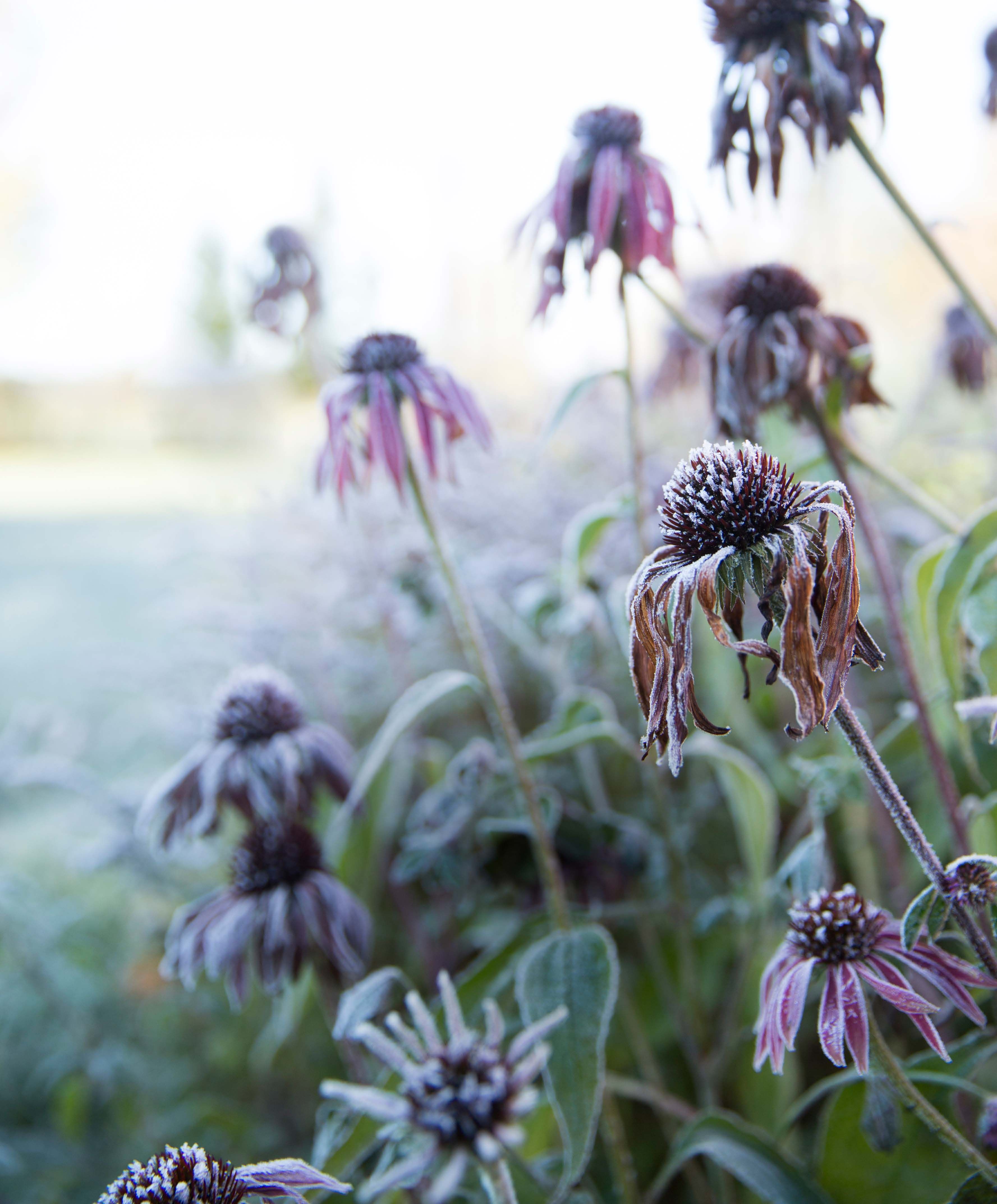 Vielä vihreä nurmikko on saanut kuurakannen ja tuntuu jalkojen alla tankealta. Korkeavartiset kultapallot ovat jäätyneet talven törrökeiksi. Vilahtikohan nurkan takana fasaani?