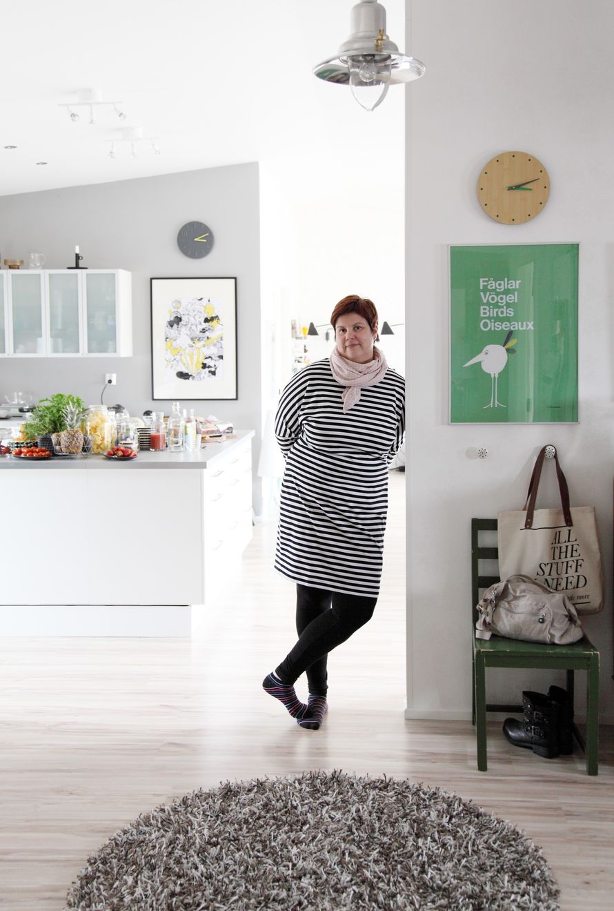 Asukkaat: It-alalla työskentelevä ja omaa sisustuspuotia pitävä Anne Karkkonen sekä lapset Jonna, 15, ja Kati, 12. Lemmikkirotat Lulu ja Lumi.
