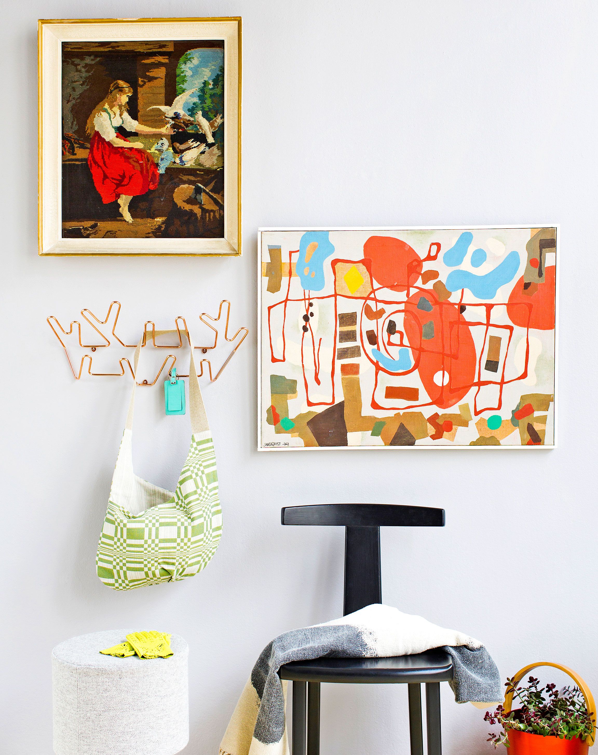 Jos et halua ripustaa seinälle hääkuvaasi tai äitisi ja isäsi hääkuvaa, mitä jos laittaisit jonkin sinulle merkityksellisen kuvan? Älä myöskään pelkää koristelemasta kotiasi näteillä tavaroilla - liian pelkistettyjen sisustusten aika on ohi. Kuva: Anna Aromaa ja Heli Blåfield