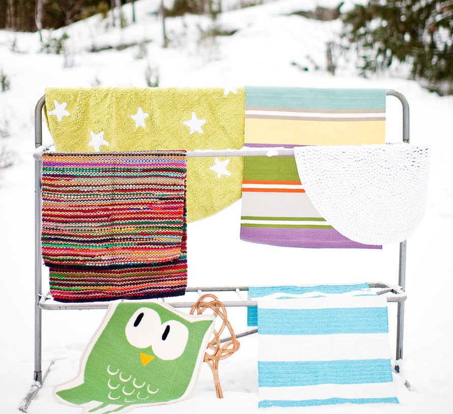 Kun viet maton ulos, älä laita sitä suoraan lumihangelle, vaan viilennä sitä ensin tamppaustelineessä tai vaikkapa tuolin päällä. Siten lumi ei sula mattoon eikä kostuta sitä turhaan. Kun matto on viilentynyt, laita se lumelle nukkapuoli alaspäin ja tamppaa varovasti.