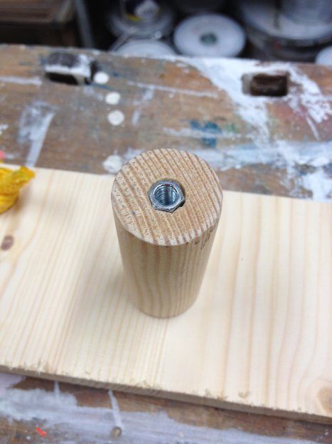 Poraa tapin toiseen päähän reikä pituussuunnassa. Reiän halkaisijan tulee olla samankokoinen kuin kaksoipääruuvin vastakappalepala, niin että vastakappale uppoaa napakasti reikään.