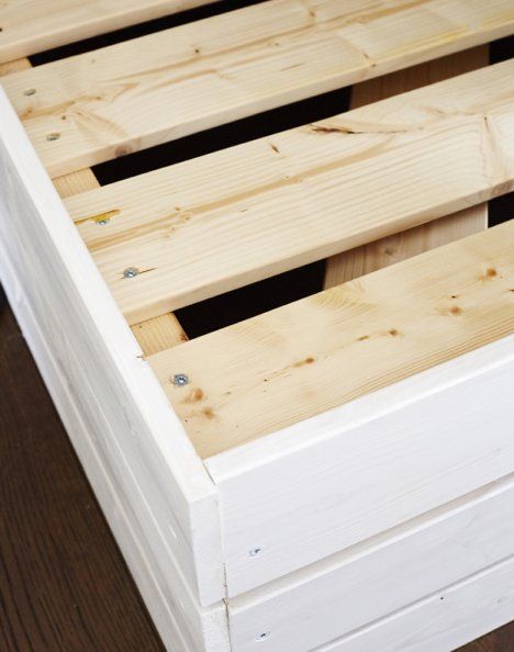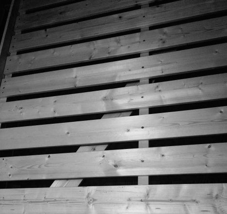 3) Pohjalle laitettiin yksi lauta ristiin, jotta sänky säilyttää muotonsa jämäkästi. Sitten laitettiin laudat tukirangan päälle sängyn sälepohjaksi. (Kuvat alla.)