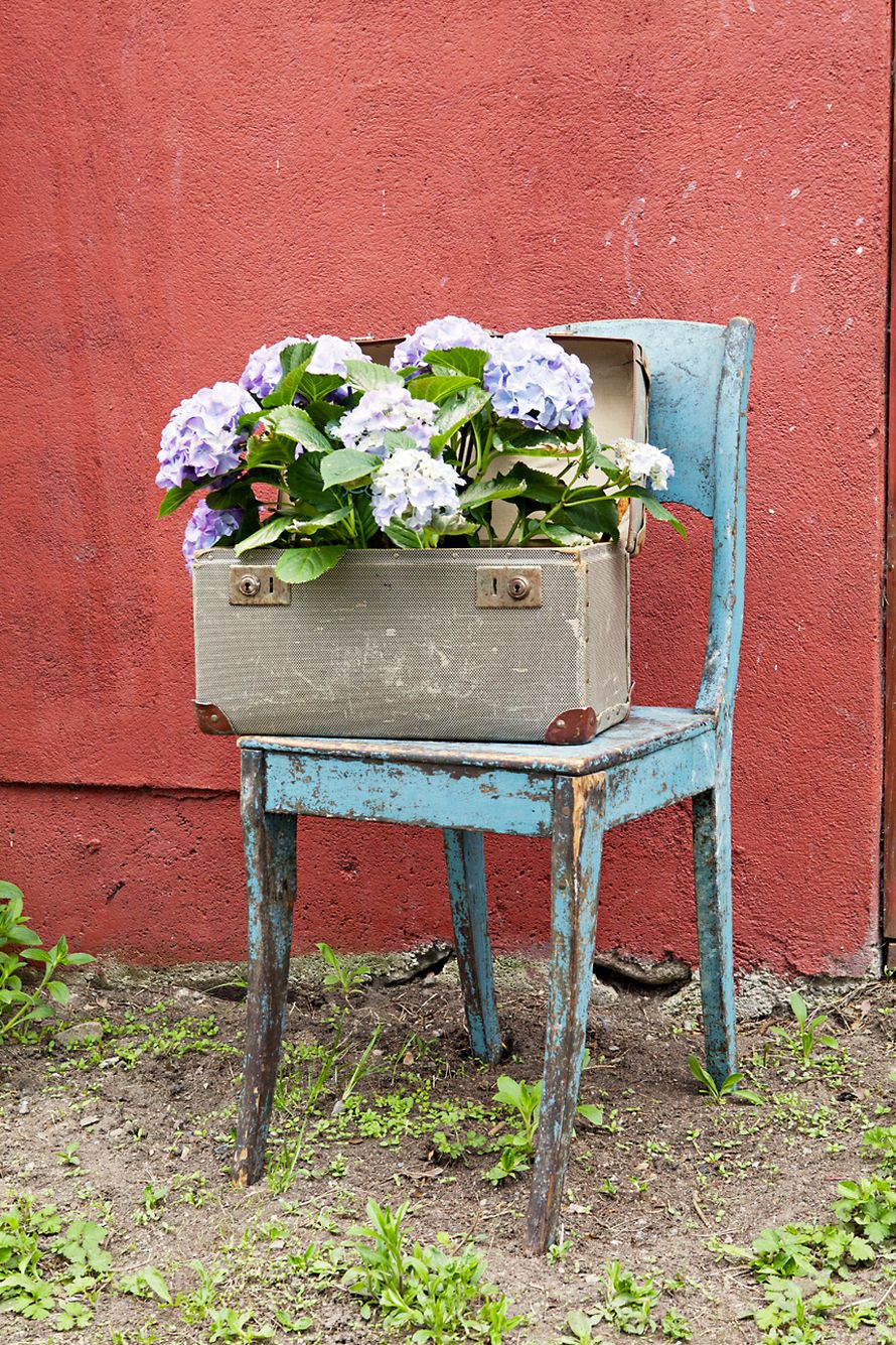 Hauska ja helppo idea: Istuta kesäkukat vanhaan matkalaukkuun
