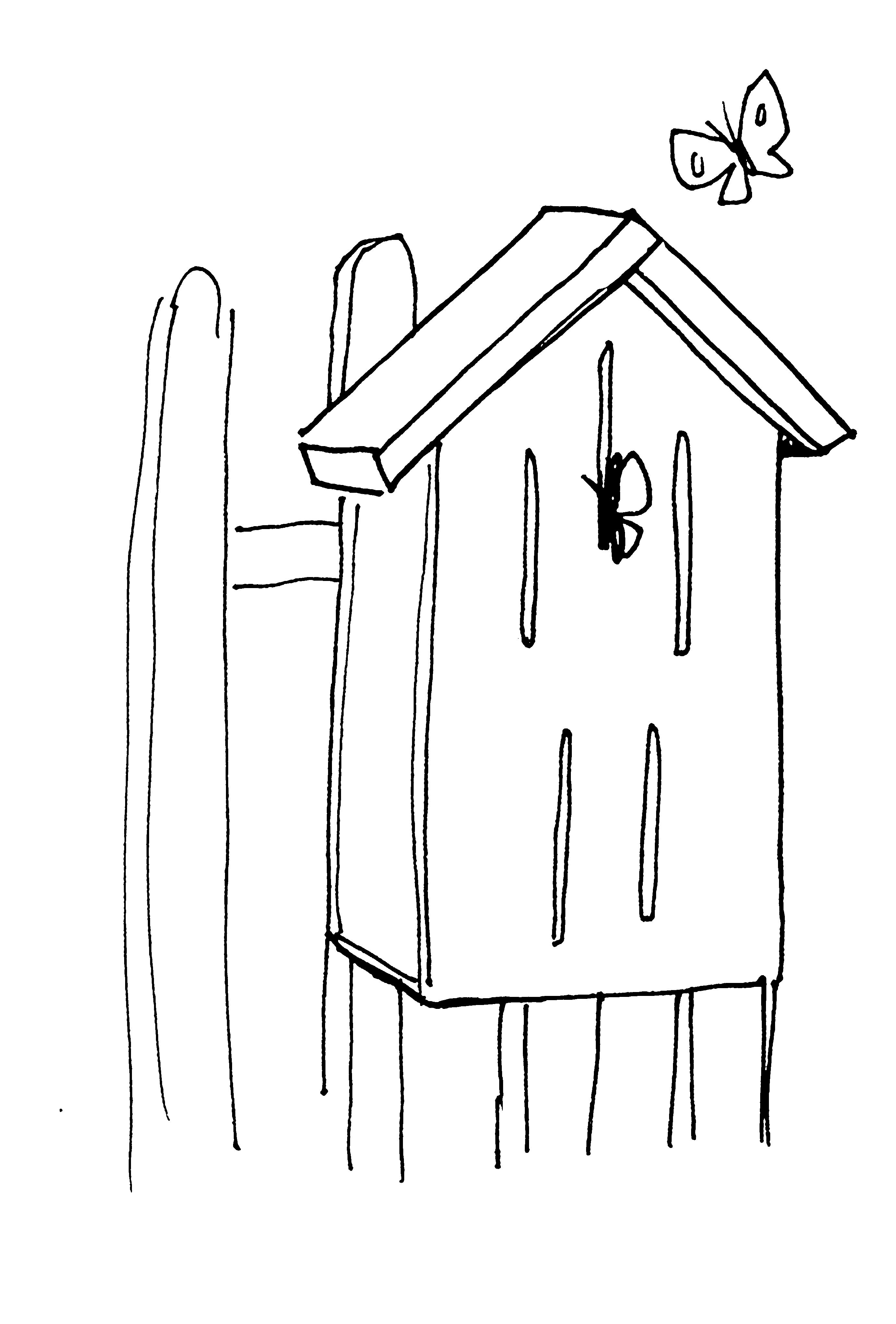 Perhosten viihtymistä pihapiirissä voit auttaa myös rakentamalla niille suojapaikaksi perhoshotellin. Vanerista tehdyn pöntön kuva on piirroksessa.