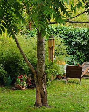Paahteisen pihan jin-tilaa voi parantaa lisäämällä puita, markiiseja tai pergolan. Lisää jang-energiaa saa poistamalla puita tai karsimalla oksia.