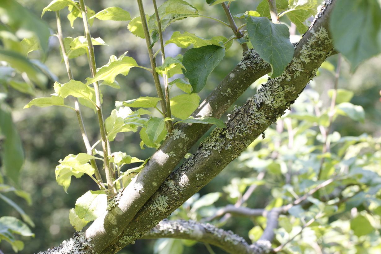 Kesäleikkauksen jälkeen puu myös kasvattaa vähemmän vesiversoja. Siis niitä kohtisuoraan ylös kasvavia hujoppioksia, jotka eivät koskaan järeydy tarpeeksi vahvoiksi kantamaan satoa.
