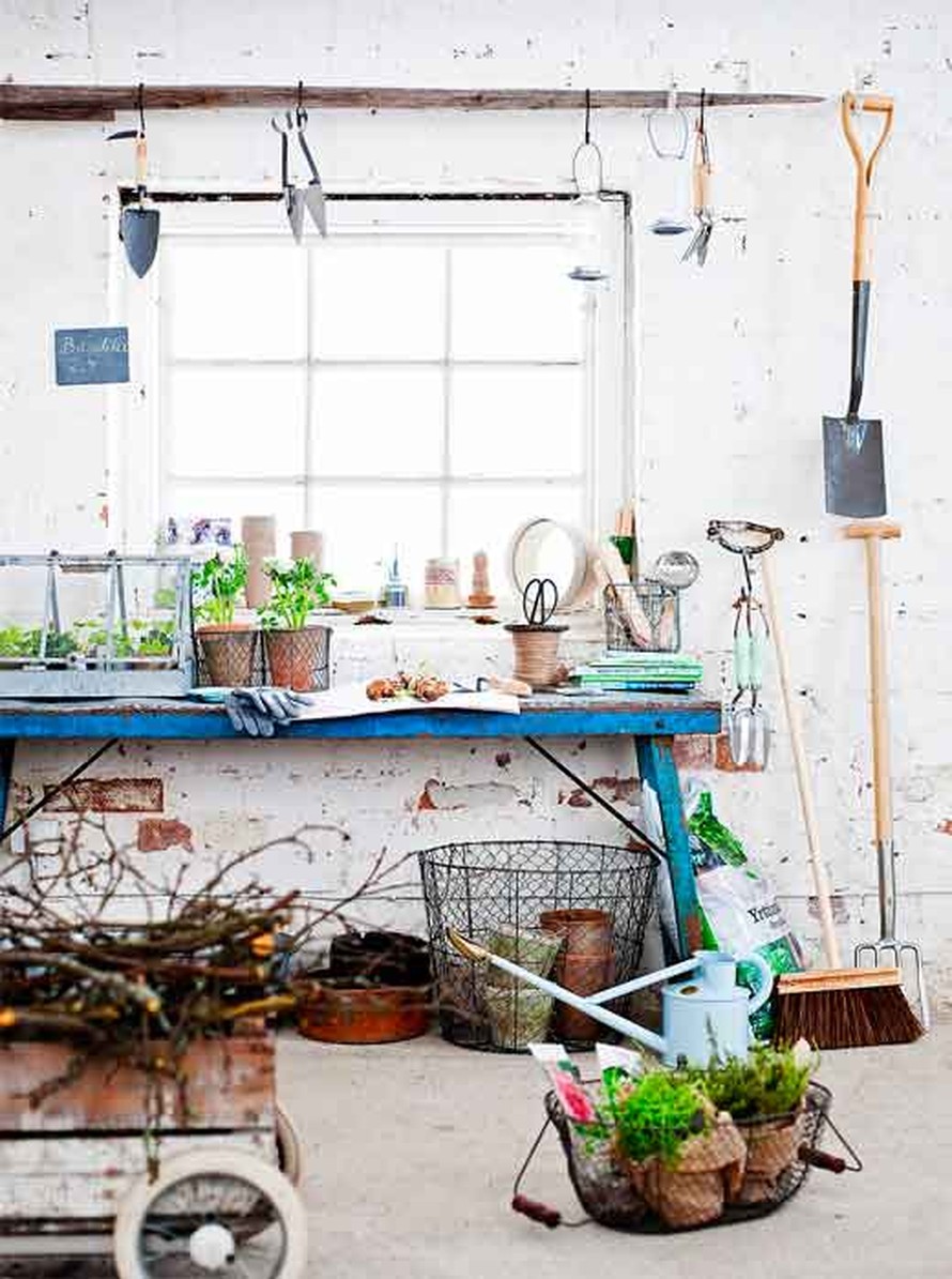 Kuten mikä tahansa työ, myös puutarhatyö vaatii kunnon työpisteen. Nyt saa loppua aika, jolloin ruukut, taimet ja varusteet olivat sikin sokin ympäri pihaa ja varastoa. Ensi kesäksi aion rakentaa harrastelijapuutarhurin työpisteen, jossa taimet ja tavarat pysyvät järjestyksessä. Kuvan sinkkikantinen pihatyöpöytä on Home Bazaar -liikkeestä Espoosta.