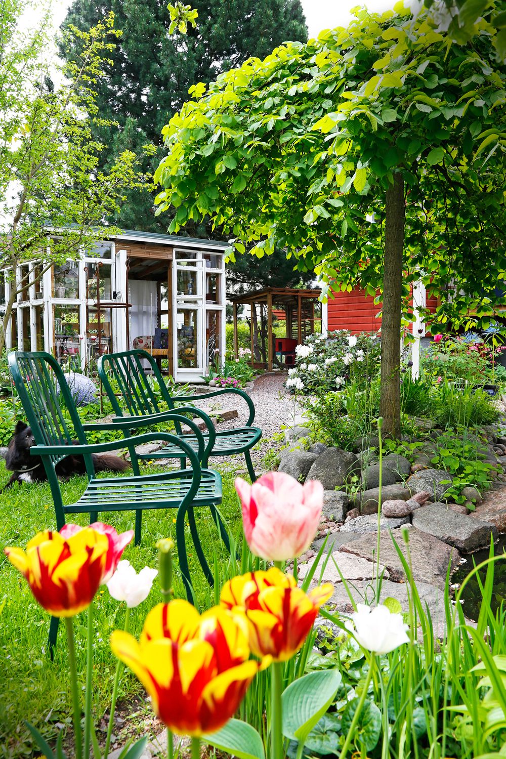 Kaupunkipuutarhassa on puuhaa arki-illoiksi. Puutarha on hyvin esikkoystävällinen, sillä vanhat omenapuut ja Siskon istuttamat magnoliat, kalmiat, atsaleat, schalininkirsikat ja jalohortensiat varjostavat matalampia perennoja sopivasti. Maa on multavaa, vanhaa merenpohjaa, ja paikka on lämmin ja suojaisa. Kaikki rehottaa.