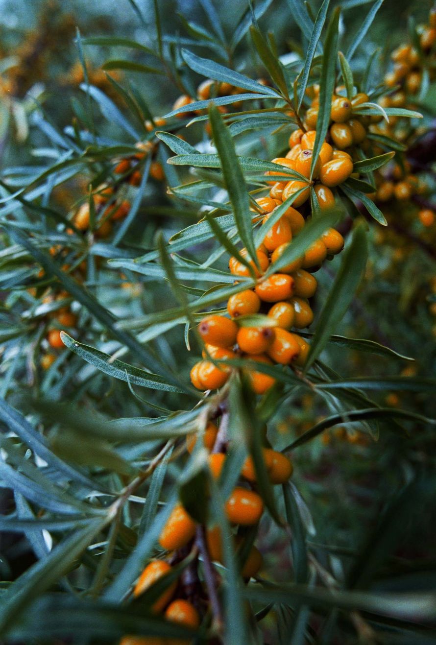 Tyrni tuo pihapiiriin aivan omaa hohtoaan. Lehdet ovat hohtavan hopeiset, marjat pirteän oranssit. Pensas kukkii kauniin kellanvihrein kukin ennen lehtien puhkeamista toukokuussa. Ja komeakin se on: vanhat tyrnipuskat voivat olla jopa useamman metrin korkuisia.