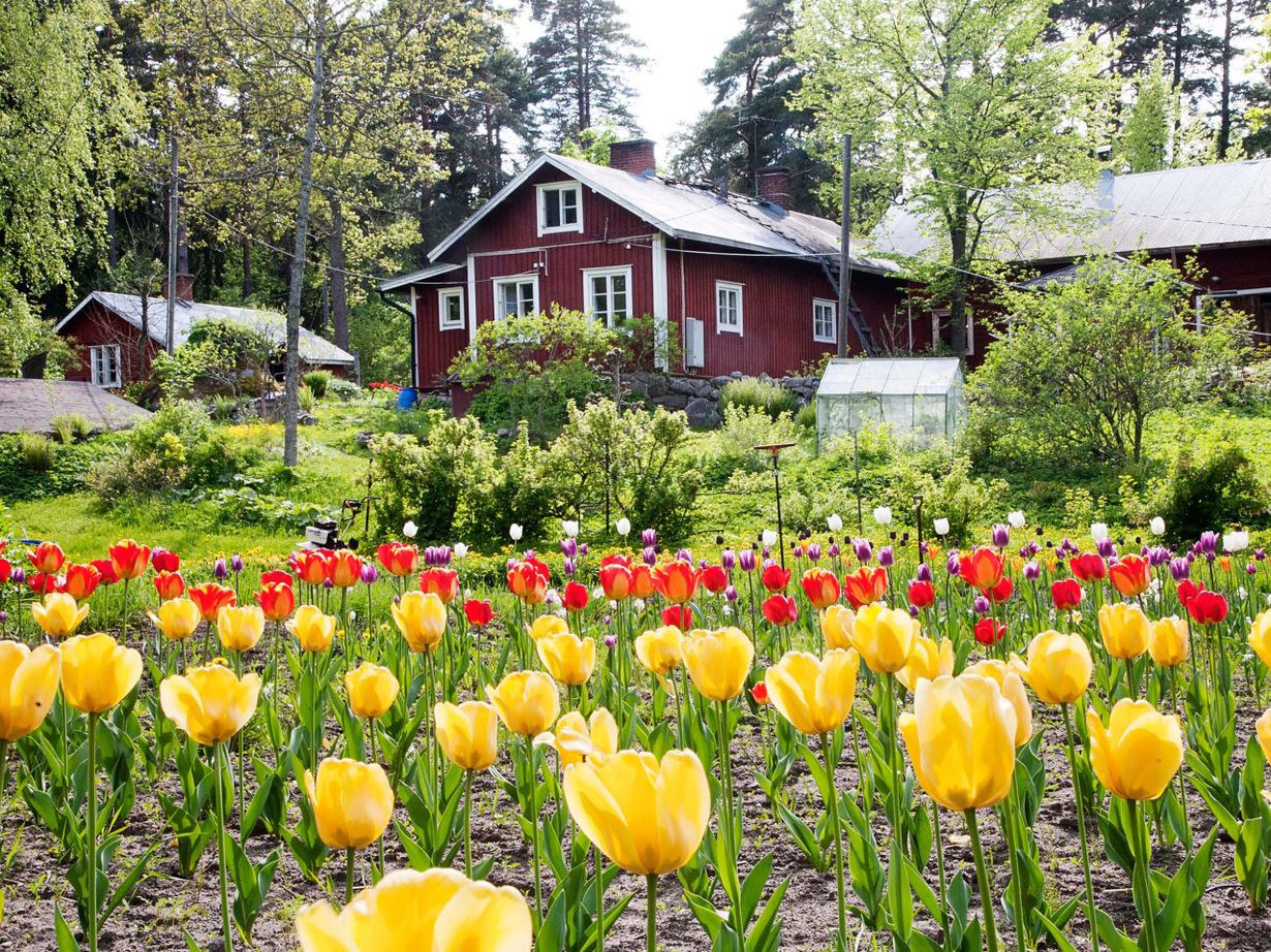 Hans van der Ende on järjestänyt Villingin saarelle myös hollantilaisen yllätyksen. Kokonainen pelto erilajisia ja -värisiä tulppaaneja hehkuu alkukesällä mahtavaa väriloistoa.