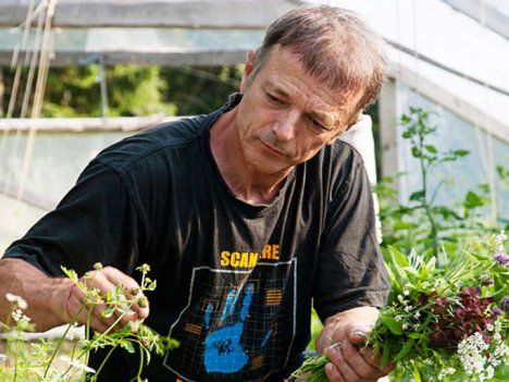 Alkuun pariskunta jakoi viljelytyöt tasan, mutta lasten synnyttyä Hans rehki pelloilla, kasvihuoneella ja metsissä enemmän. Arboristina Hans luo puille kasvun edellytyksiä, elvyttää, harventaa ja kaataa puita, pilkkoo halkoja. Puunhoito muistuttaa usein kirurgin työtä: elämä voittaa, kun terveet osat jätetään.