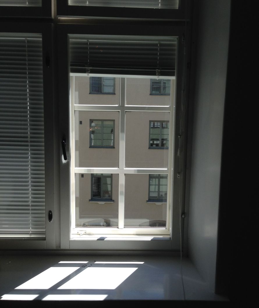 Kun asuu kaupungissa, tottuu siihen, että toisten ikkunoista näkee sisään. Kuin sanattomasta sopimuksesta se hyväksytään, eikä ikkunoissa väijytä kiikarit kädessä kuikuilemassa muiden tekemisiä, kuten yleisesti luullaan. Meilläkin vastapäisen talon seinään on vain kolmiloikan verran, eikä ikkunoita ole peitetty siellä eikä meillä. Molemminpuolinen luottamus!