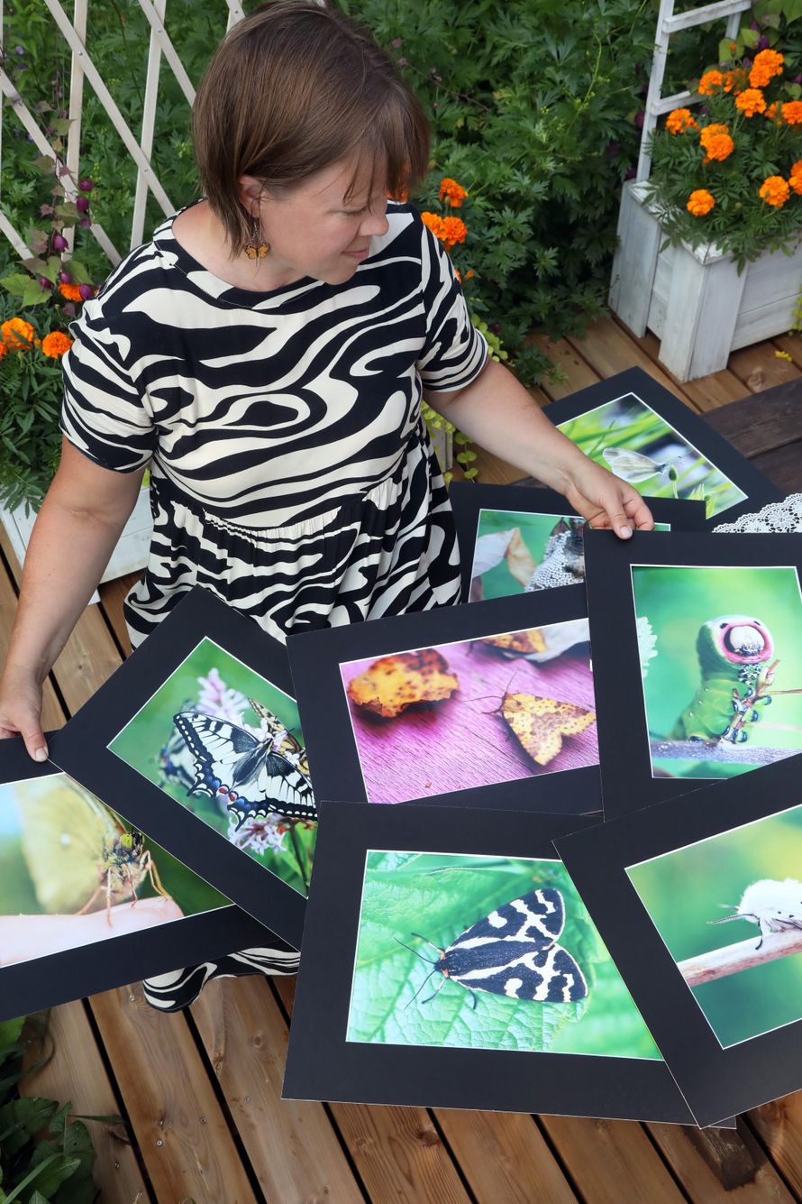 ”Vanhempainvapaalla minulla oli aikaa yhdistää valokuvausharrastukseni ja luonnon tutkiminen yhdessä lasten kanssa. Yhdessä ihmettelimme monenlaista mönkijää. Liityin Facebookin Suomen perhoset ja Suomen ötökät -ryhmiin, ja minulle selvisi, että perhosiahan voi kasvattaa! Ensimmäiset kasvattimme olivat tavallisia nokkosperhosen toukkia.”