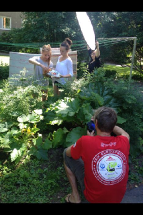 Kasvisruokakilpailun kuvauspäivä oli helteinen eli keittiössäkin oli melko lämmintä. Hella ja uuni päällä koko päivän ei vähentänyt hien määrää.