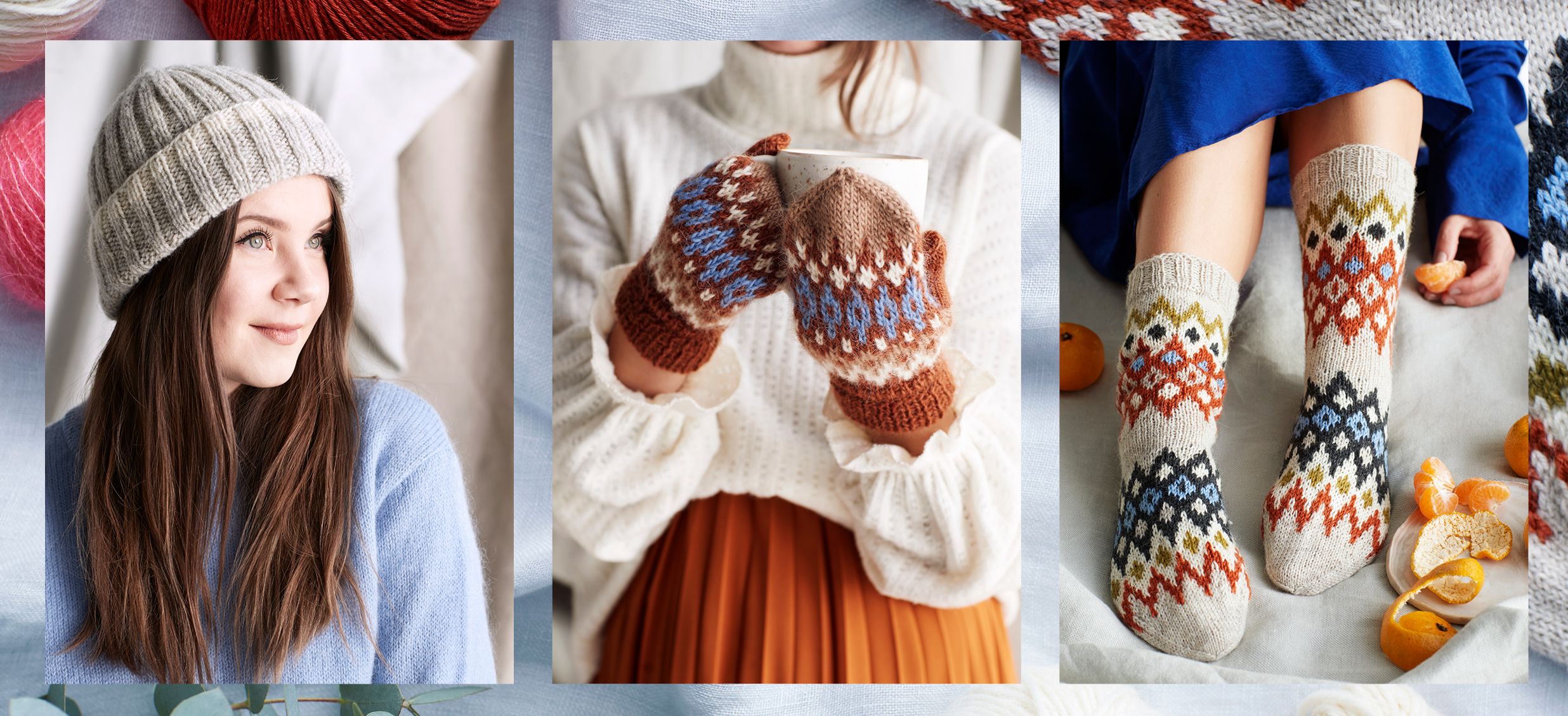 Islantilaisista helpoista kirjoneuleista innostuvia hemmotellaan Novitan kanssa tehdyllä mallistolla. Nämä sukat ja lapaset löytävät tiensä myös neulenoviisien puikoille.