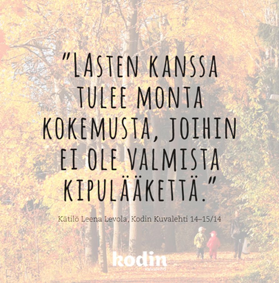 Lastenkasvatuksesta 10.9.2014 klo 18:00 Tilaa Kodin Kuvalehti ajatus oivallus voimalause Tilaa Lue digilehtenä