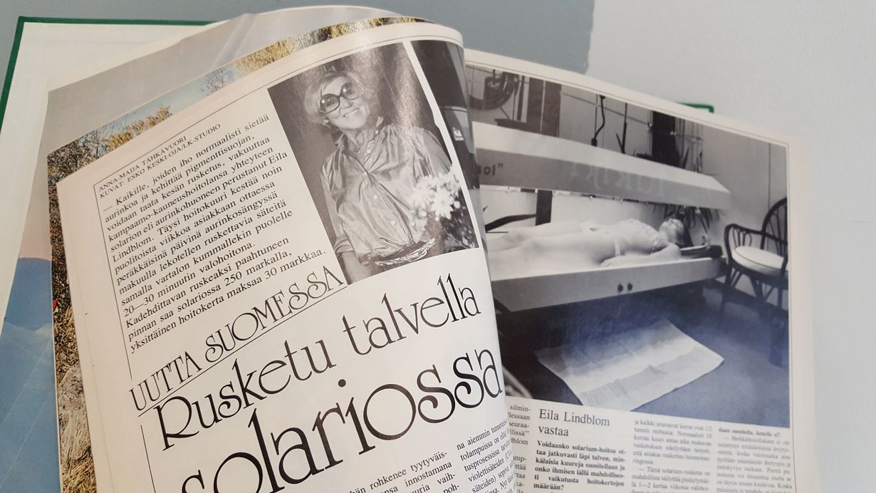 Kodin Kuvalehti 1/1980 kertoi uutuudesta nimeltä Solarium-aurinko. Alan ensimmäinen yrittäjä Suomessa suositteli sitä kaikille terveille ja luonnonauringossa ruskettuville.