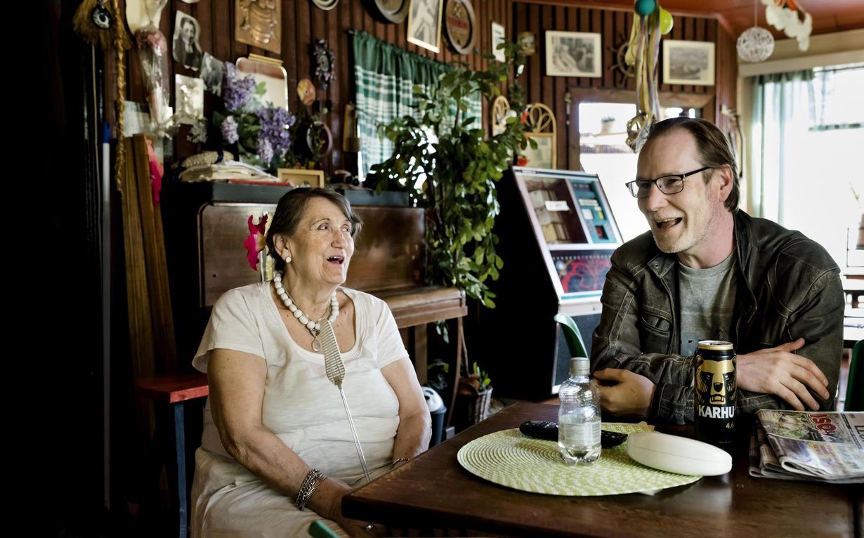 Anneli Vihanta, 74, on pitänyt keskiolutkuppilaansa Kannuksessa 55 vuotta. Asiakkaat eli ”pojat” ovat Annelin ystäviä, jotka katsovat toistensa perään.