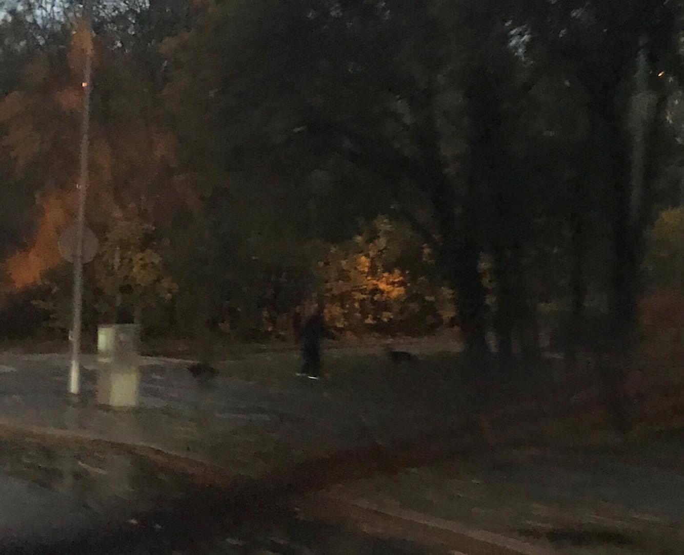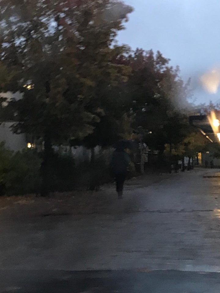 Helsinkiläinen Katja Sirkiä otti havainnollisia kuvia siitä, miltä tummiin pukeutunut ihminen näyttää syyspimeällä auton ratista katsottuna.