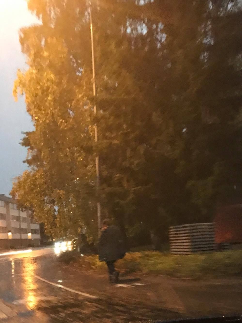 Katja on ottanut ilmiöstä kuvia auton ollessa pysähdyksissä tai pelkääjän paikalla istuen. Katso, erottaisitko itse niistä jalankulkijan.