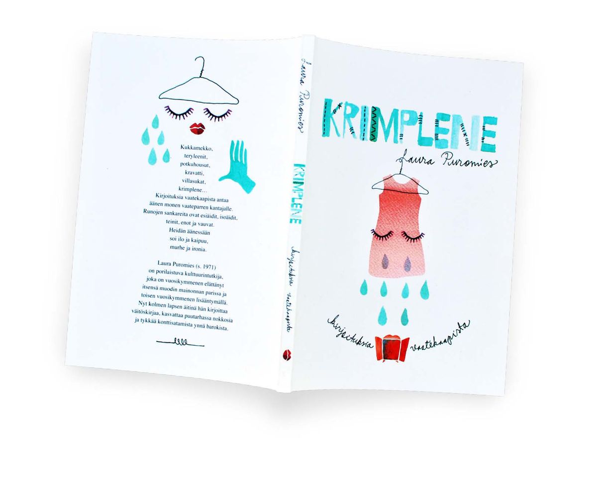 Laura tilasi kirjaansa Krimpleneä 250 kappaletta ja maksoi pelkästä painatuksesta. Kannen suunnitteli ilmaiseksi ystävä, joka myös taittoi tekstit.