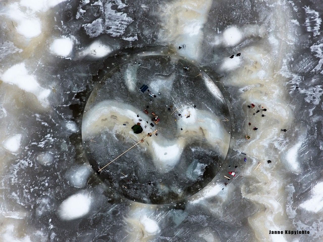 Janne Käpylehto latasi YouTubeen videon mökkijärvensä jäälle tekemästään jääkarusellista. Videosta tuli hetkessä hitti ulkomaita myöten.