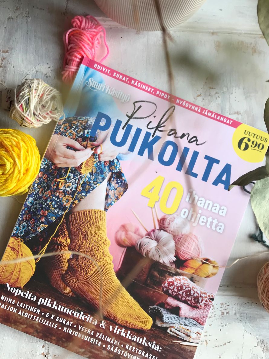 Sukkia, käsineitä, huiveja, pipoja ja muuta mukavaa. Kirjoneuleita, joissa annat langanpätkille kyytiä, nopeita neuleita paksuilla puikoilla sekä vauhdikkaita virkkausmalleja – tätä kaikkea sisältää uusi Pikana puikoilta -erikoisjulkaisu, jonka on tehnyt Suuren Käsityön toimitus.