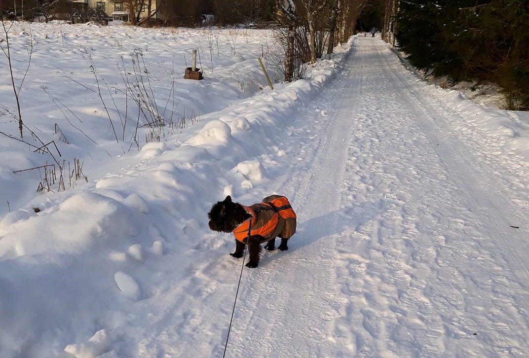 ”Mäyräkoira Elvi viihtyy hyvin takissaan” – Leena Lauronen