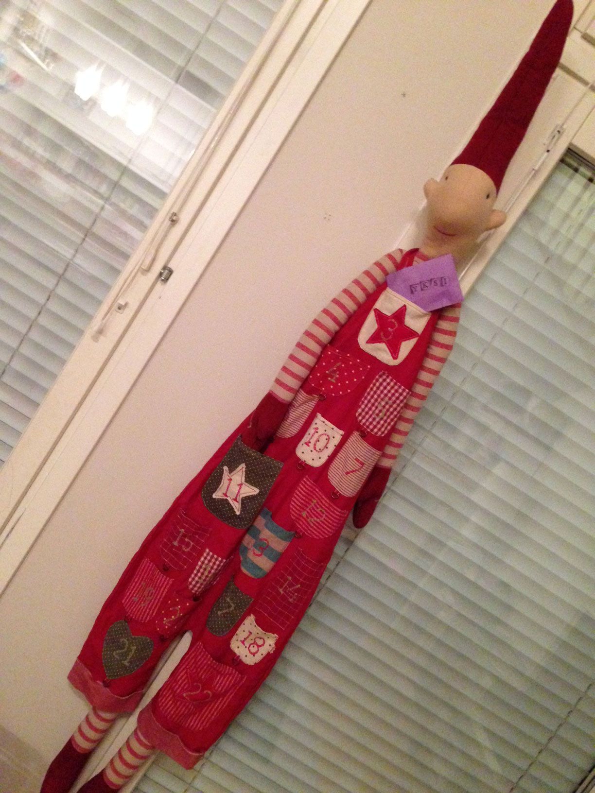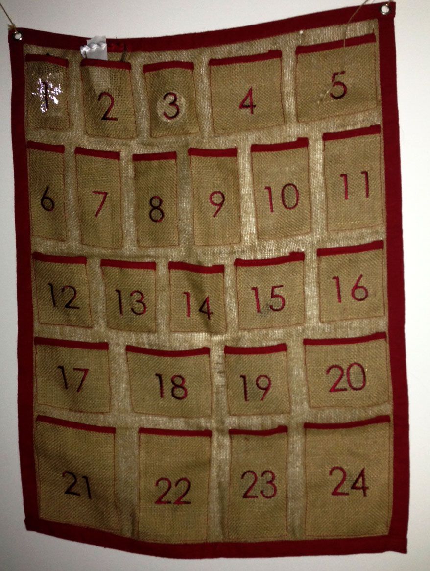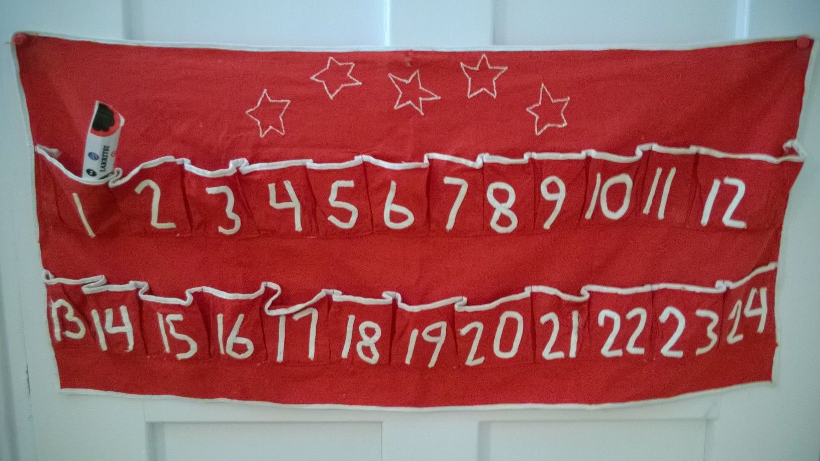 Kankaisessa joulukalenterissa on taskut, joihin tonttu tuo jotain kivaa yön aikana. Sain kalenterin mummoltani, kun olin lapsi, ja se on jo hauraaksi kulunut. Aikuiset lapseni vaativat kalenterin seinälle joka vuosi ja ovat pettyneitä, jos tonttu on hoitanut tehtävänsä huonosti. Kalenterista taistellaan vielä perinnönjaossa. - Anne Rikama, tuottaja-toimittaja