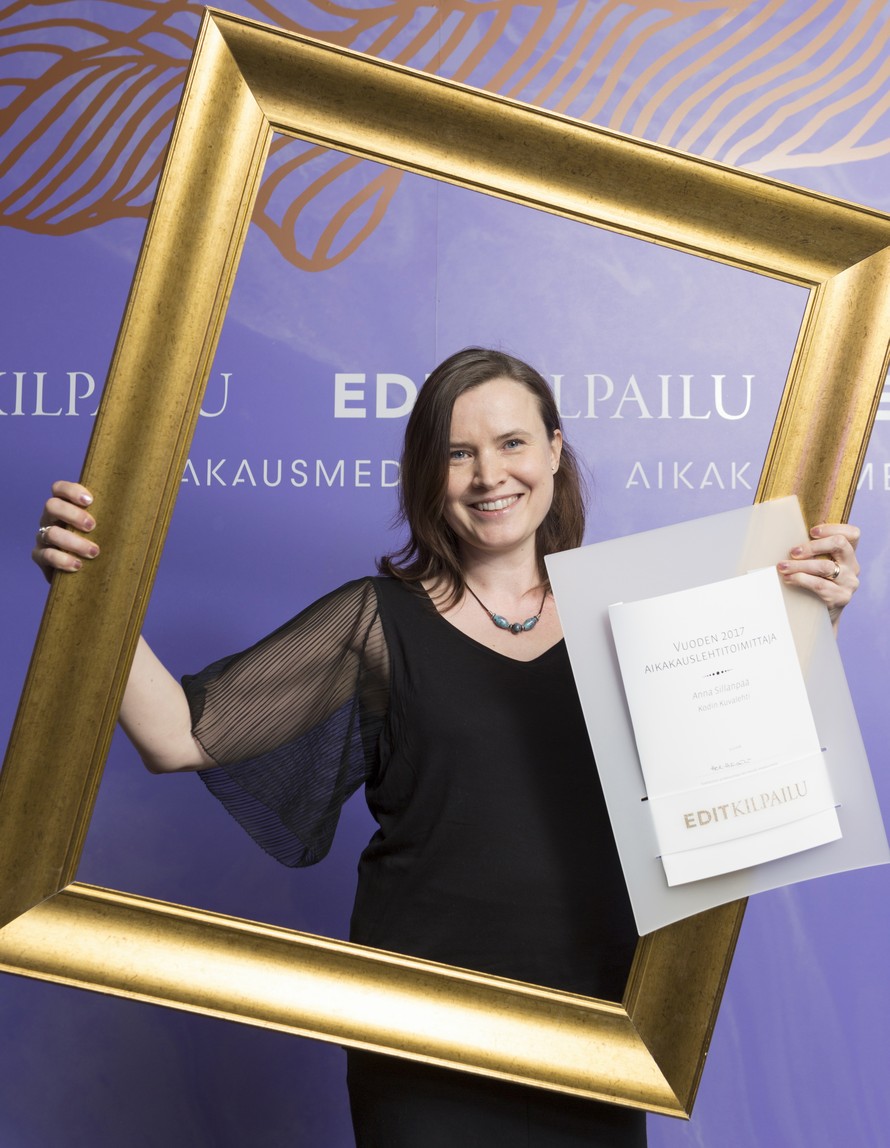 Kodin Kuvalehden toimittaja Anna Sillanpää palkittiin torstai-iltana Edit-gaalassa vuoden 2017 aikakauslehtitoimittajana. Palkintoraati kiitti Annan journalistista osaamista seuraavasti: