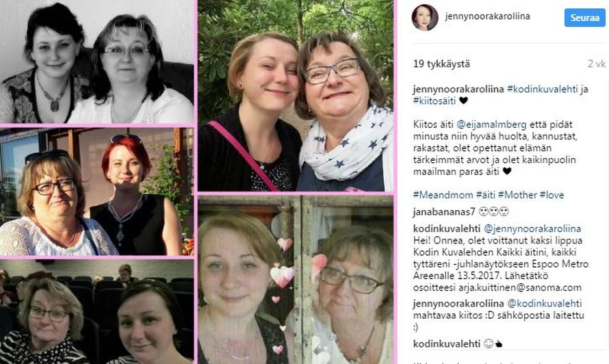 Keräsimme kevään ajan äitien ja tyttärien yhteiskuvia sekä viestejä, joissa kiitetään äitiä. Saimme valtavan määrän kuvia, kiitos niistä kaikista! Meillä on maailman parhaat äidit. Kuvia löydät Instagramista tunnisteella #kiitosäiti #kodinkuvalehti.