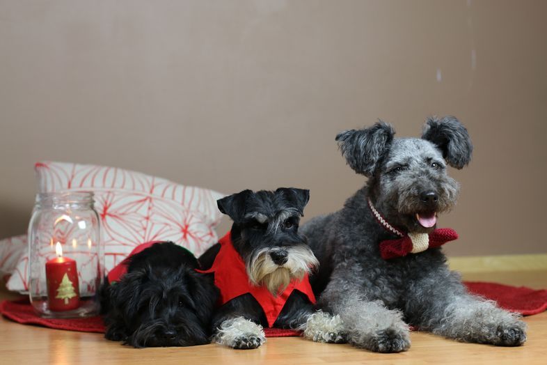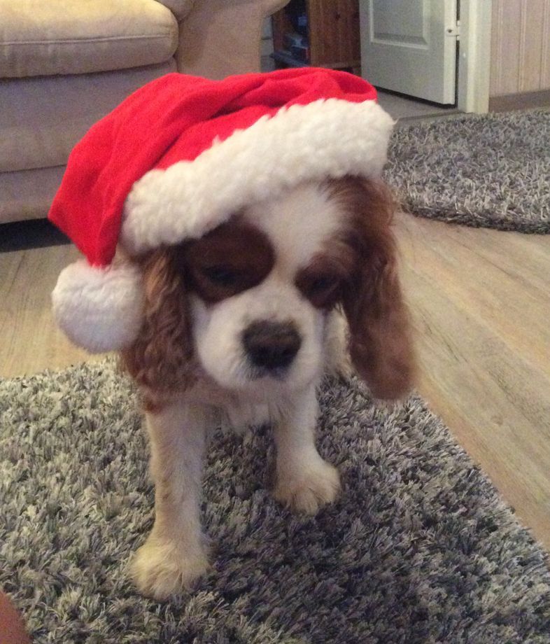 Meillä koiruudet ovat mielellään kuvissa, tässä pienin taisi nukahtaa. Joka joulu laitetaan erilaisia jouluasuja, ja kyllä innoissaan poseeraavat. - Käyttäjä1269