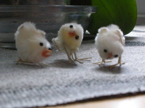 "Nämä tiput ovat yli 30 vuotta vanhoja ja kärsivät loogisesti jo monenmoisista selkä- ja hartiavaivoista. Joka pääsiäinen ne koristavat urhoollisesti rairuohopenkkejämme." - Jenni Hakola, Jyväskylä