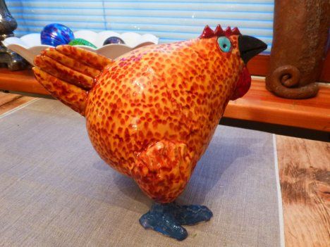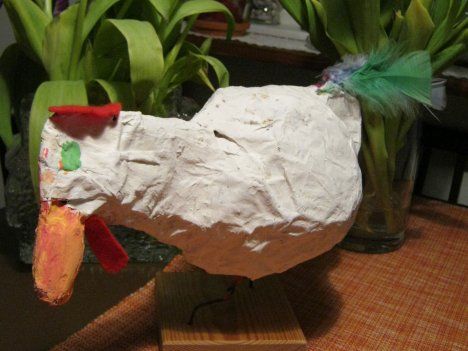 "Tämä tipu - vai paremminkin mahtava kana - oli Vilnassa erään gallerian ikkunassa. Galleria oli kiinni, ja se harmitti. Seuraavana päivänä menimme katsomaan, jos se olisi auki. Oli pääsiäispyhä, mutta olihan se silti auki. Niin kana lähti Suomeen. On niin jykevä muisto, että muita tipuja ei pääsiäispöytä kaipaa." - Helena Föhr, Kajaani