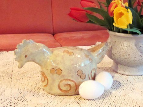 "Olen yli 70-vuotias eläkeläinen ja käynyt vuosia keramiikkakursseilla. Pari vuotta sitten tällainen pääsiäistipu oli pop. Tämä koristaa pääsiäisenä pöytää rairuohon keskellä, värikkäitä munia ympärillään." - Kaija Lukkari, Kerimäki