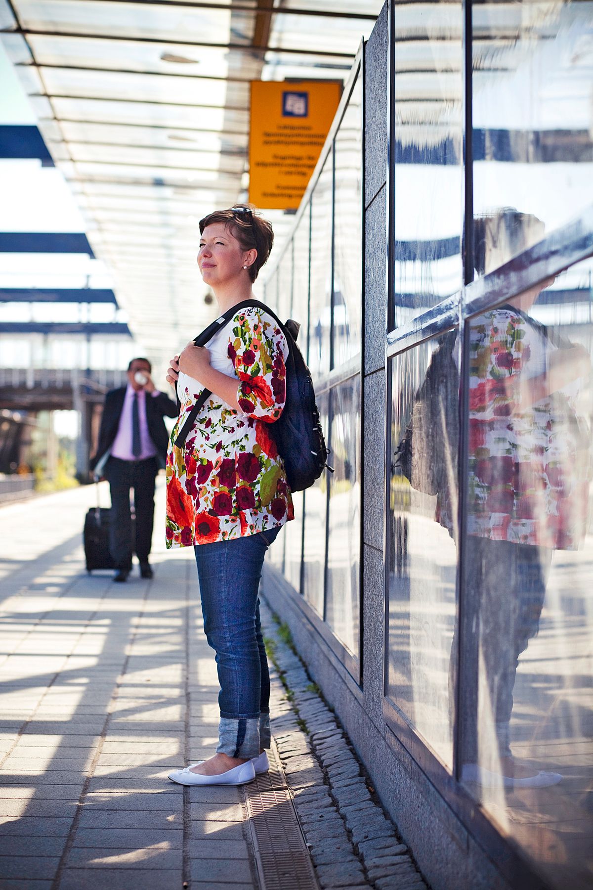 Ulla-Pia pääsee työpaikalleen Helsingissä kätevimmin junalla. Junamatkoilla aamun rumba hetkeksi rauhoittuu.