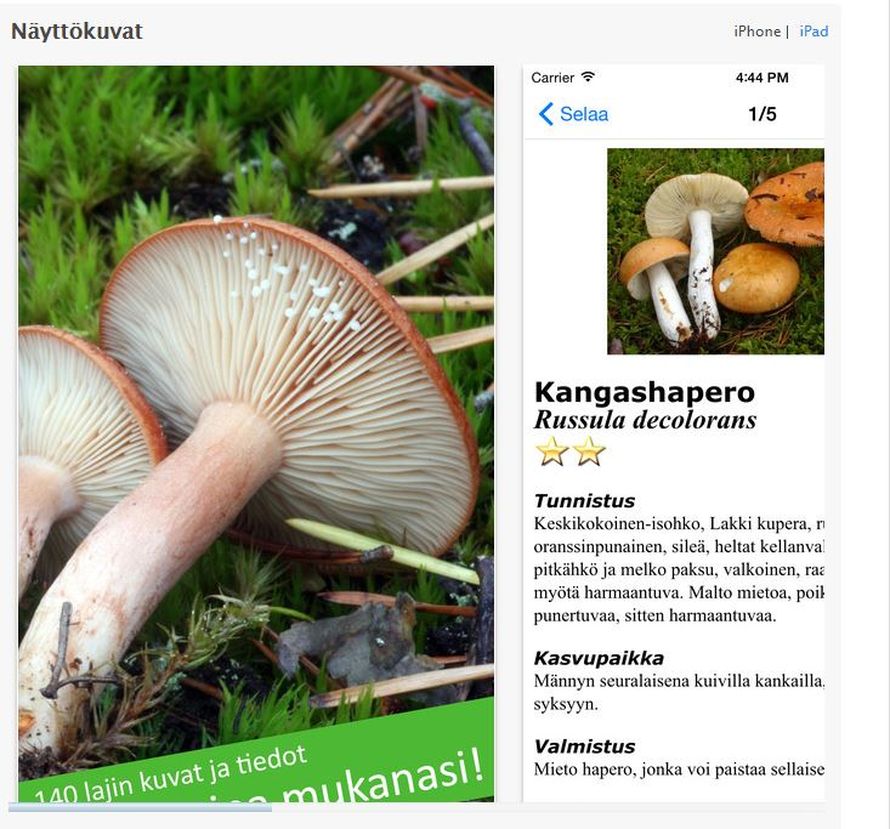 Sieniopas-sovellus maksaa 4,99 euroa ja löydät sen AppStoresta ja Google Playsta.