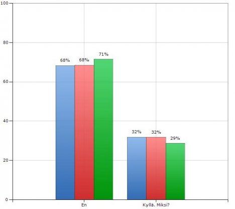 | Kyllä | 32 % | 32 % | 29 % |