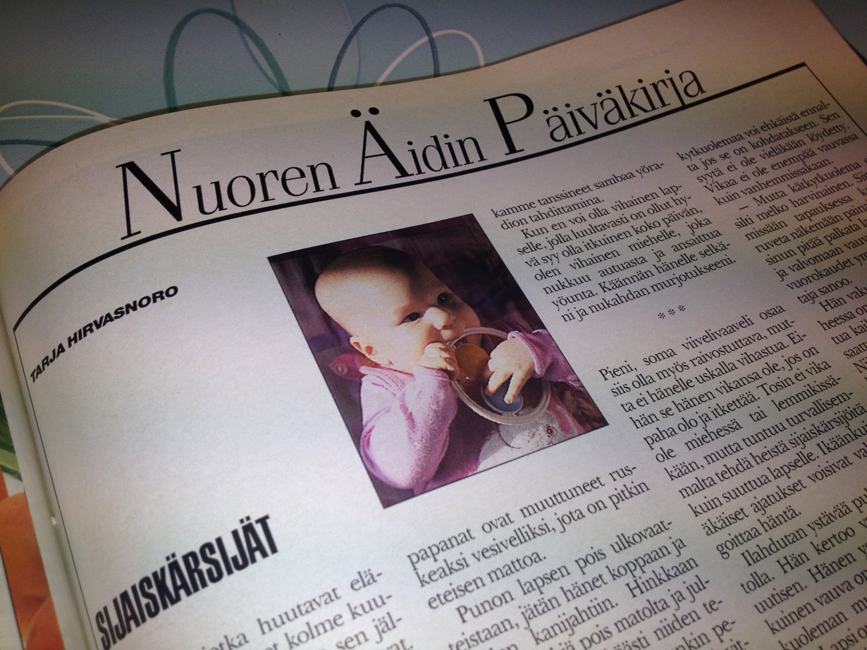 Tammikuussa 1989 nuori äiti, Kodin Kuvalehden toimittaja Tarja Hirvasnoro, aloitti pakinasarjan ensimmäisen vauvansa syntymästä. Heinäkuussa 2012 hänestä tuli nuori mummo.