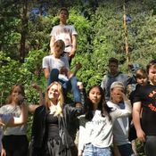 Maamerilaivaa, tanssistoppia vai kellopeliä? Tanssileiriläiset ehtivät myös ulos pihaleikkeihin. Ohjaaja Hozan innosti.