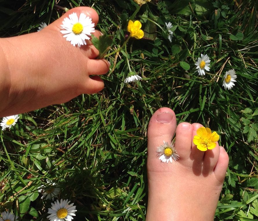”Pienten lapsenlasten kesävarpaat. Willa 4 v ja Hilla 8 kk.” Mummu