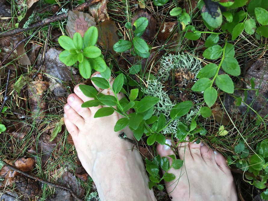 ”Juhannus ulkosaaristossa, Korppoossa. Sateesta huolimatta kesävarpaat pääsivät aistimaan kallion, varvikot ja lätäköt.” Jopo