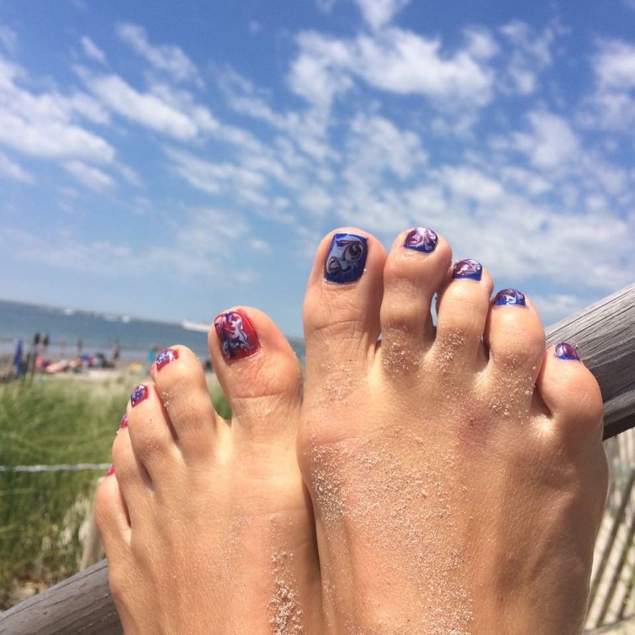 ”Sini-puna-valkoisilla kesävarpailla kelpaa lähteä kauan odotetulle kesälomamatkalle Amerikkaan!” Nailartist