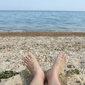 ”Jalkahoitolan kautta uimarannalle aurinkoisena ensimmäisenä lomapäivänä!” Lomalla
