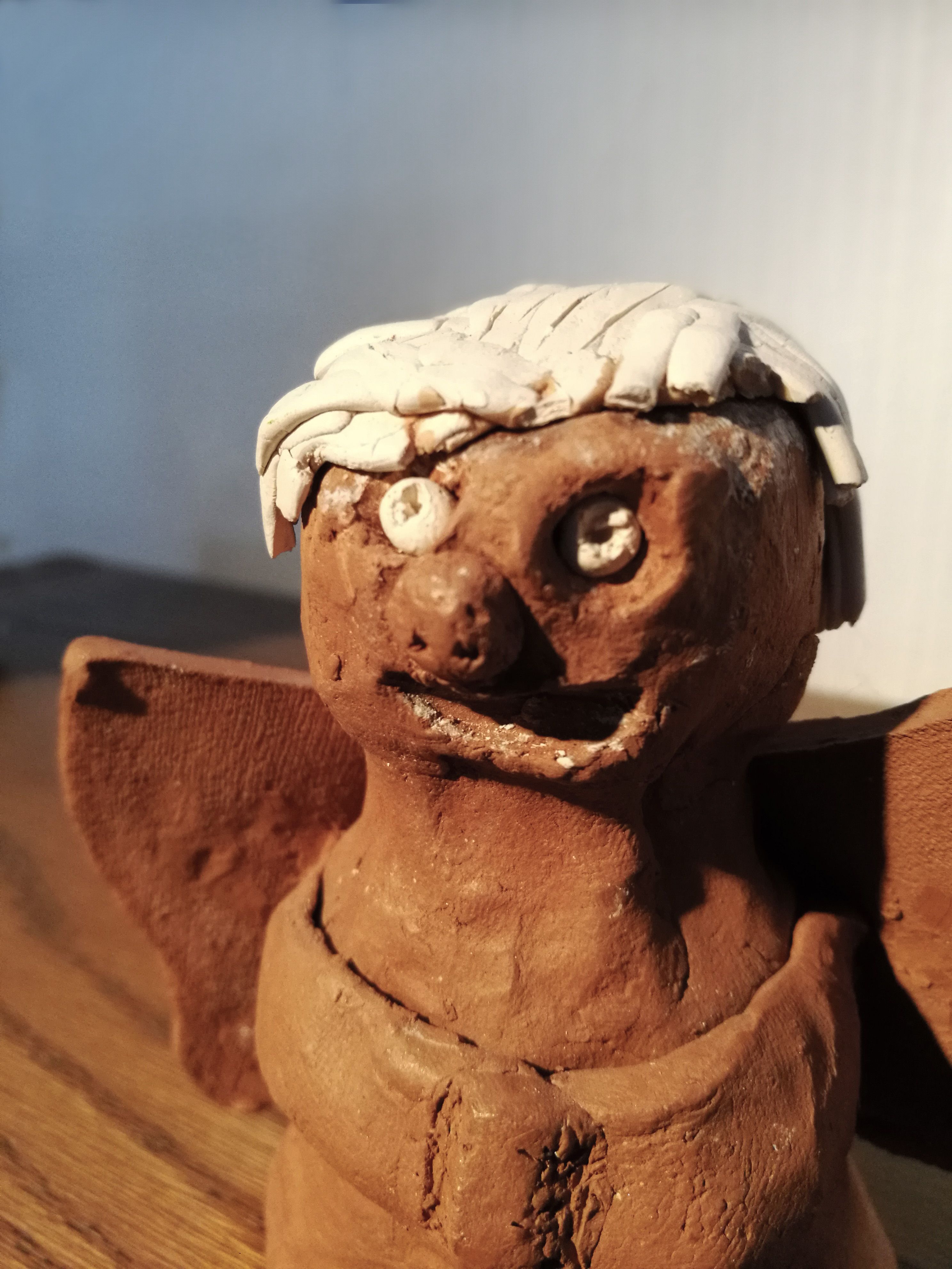 ”Mieheni veljen 90-luvun alussa tekemä saviveistos kuuluu anoppilan jouluun. ’Engelin’ jokseenkin persoonalliset kasvonpiirteet saavat meidät nauramaan joka kerta, kun enkeliin päin vain vilkaiseekin. Siksi savienkelin ainoa oikea paikka on olohuoneessa parhaalla paikalla piirongin päällä.”