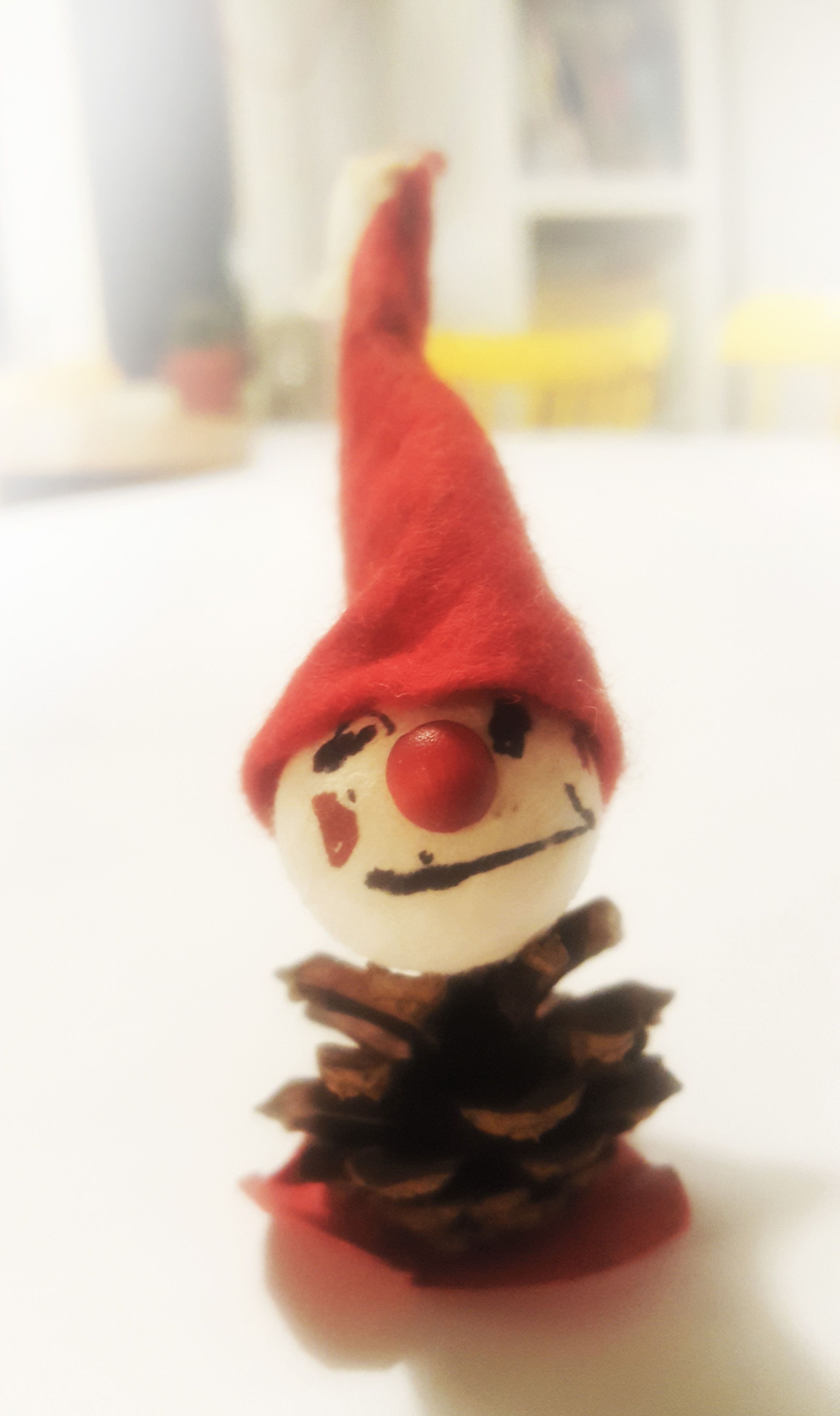 ”Kuopukseni teki tämän tontun jouluksi 2012. Hän oli aloittanut päiväkodin sinä syksynä, kaksivuotiaana. Joka kerta tämän tontun esiin nostaessani liikutun siitä pienestä tytöstä, joka oli tekemästään tontusta – ensimmäisestä omasta joulukoristeestaan – niin iloinen ja ylpeä. Kieltämättä liikuttaa myös nuo kasvot, joista tunnistaa silmät, nenän ja hymyilevän suun vain hyvällä tahdolla.”