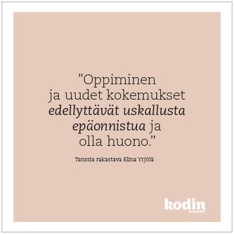 Jos tekeekin lempiasioiden lisäksi asioita, joita ei osaa, voi olla varma, että oppiminen kestää läpi elämän. Ja kun lopulta onnistuu, se palkitsee enemmän kuin uskotkaan.