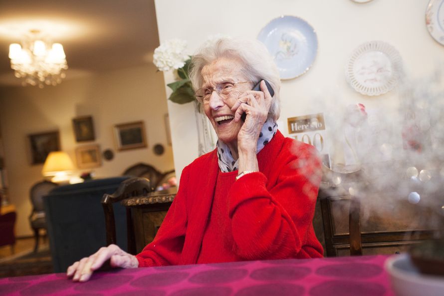 ”Kun kaikki on surkeasti eikä mikään muu auta, istahda alas ja naura itsellesi”, neuvoo hämeenlinnalainen Helvi Frick, 100.