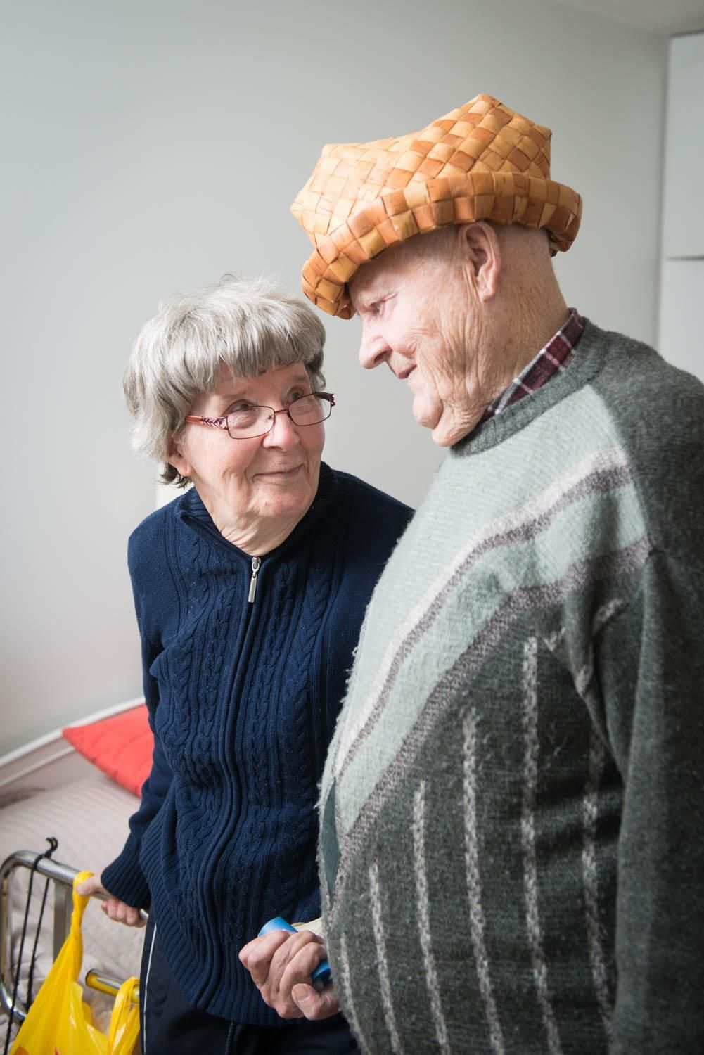 Ritva: Kuusikymmentä vuotta hoidin kaiken. Nyt on Eskon vuoro. Ihmeen hyvin hän on oppinut tekemään ruokaa. Janssoninkiusaus syntyy tuosta vain. Ehkä se johtuu siitä, että ennen eläkkeelle jäämistä ehdin olla ammattikoulussa apuopettajana ja opin pomottamaan. Olen opettanut pojillemmekin, että ei ole olemassa naisten ja miesten hommia. Hyvin he ovat oppineetkin. Viime viikonloppuna yksi pojista otti meidän valoverhot alas, että saamme ne pesuun.